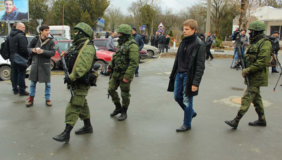 «Перебуваю зараз в аеропорту Сімферополя. Територію біля пасажирського терміналу патрулює декілька десятків людей у камуфляжі , з автоматами і ручними кулеметами. На одязі цих людей немає нашивок і будь-яких розпізнавальних знаків . Спроби звернутися до них вони ігнорують. Спільно з ними працює кілька десятків людей у цивільному з георгіївськими стрічками на одязі. Вони не говорять з якої вони організації і називаються «громадянами Криму». Дуже багато представників іноземних ЗМІ», - свідчить депутат.