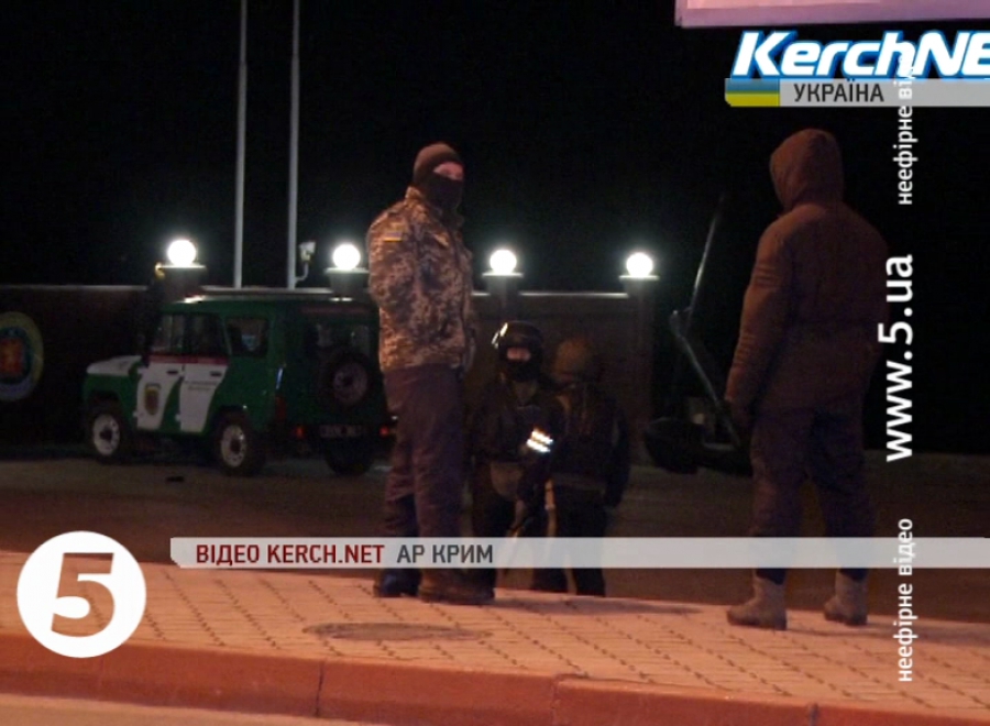 За даними тамтешніх ЗМІ, кілька автобусів з військовими під`їхали до воріт загону морських прикордонників та заблокували їх. В одного автомобіля російські номери. Після переговорів озброєних людей таки пустили в частину, вони зайняли позиції по її периметру. Зі слів заступника командира Керченського загону морської охорони Сергія Шамшури, невідомі люди у формі не висувають ніяких вимог, морські прикордонники знаходяться на своїх постах. Він також запевнив, що зброя загону морської охорони - під контролем українських військових.