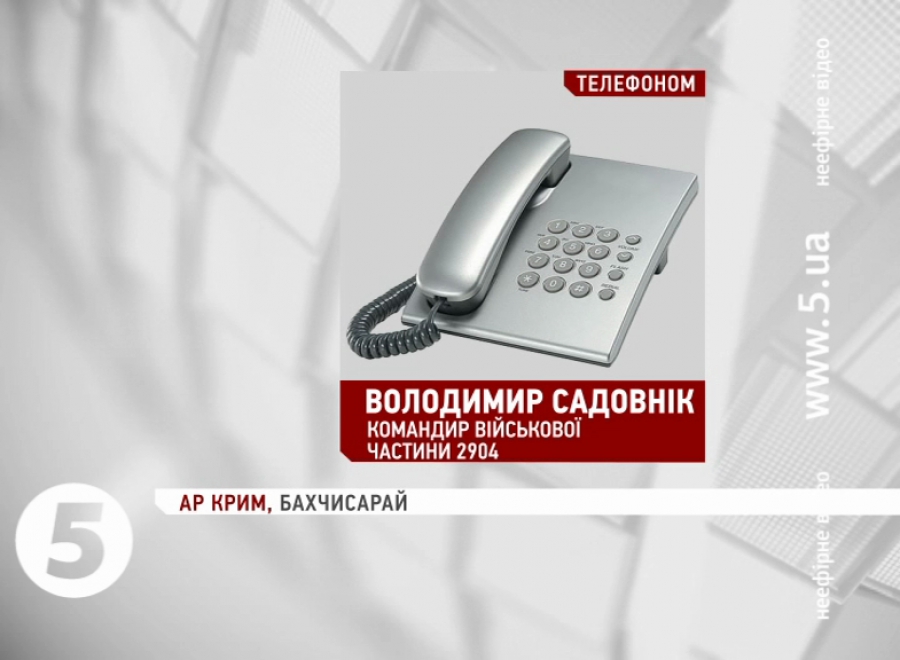 Володимир Садовнік, командир військової частини 2904: «Кругом частини стоїть порядку 300 чоловік озброєних, в камуфльованій формі, автомати, снайперські гвинтівки, гранатомети і шість БТРів. Ведуться кожні приблизно годину-півтори години переговори. Ніяких таких глобальних на даний час там штурмових дій не проводиться, але оточені щільним кільцем. Ніхто ні зайти, ні вийти не може. Та частина їх більше всього інтересує, тому що там є велика кількість зброї».