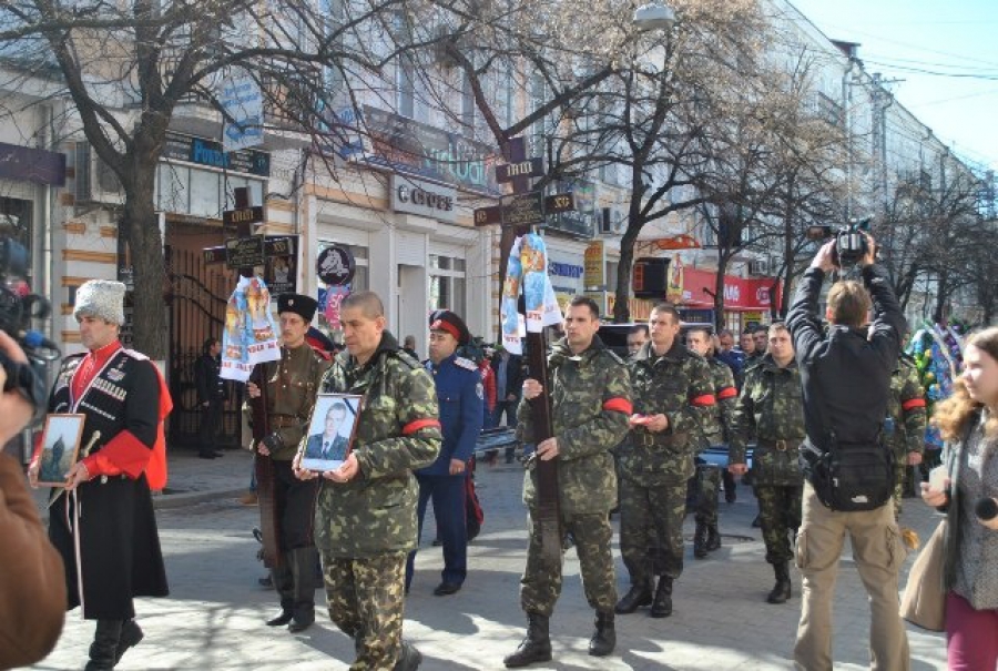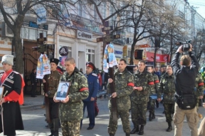 Тут же прощалися і з російським козаком. Його тіло відправлять на батьківщину у Волгоградську область, а українського прапорщика поховають на сімферопольському кладовищі. Обидва загиблих, за версією прокуратури Криму, були вбиті снайпером 18 березня під час захоплення російськими військовими та представниками «самооборони Криму» фотограмметричного центру у Сімферополі. Також, під час штурму ще двоє українських військових отримали вогнепальні поранення та травми.