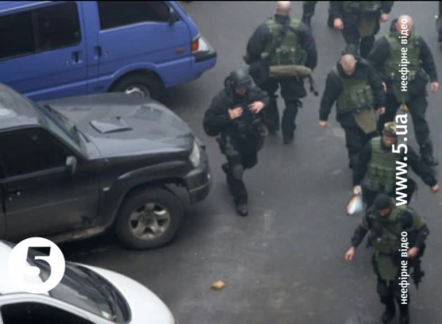 На світлинах видно десятки силовиків на подвір’ї будівлі СБУ. Чимало з них - представники підрозділу “Альфа” СБ України. Всі вони екіпіровані бронежилетами, шоломами, боєприпасами і снайперськими гвинтівками. У деяких - осколкові гранати. Деякі з “альфівців” мали жовті або білі нарукавні пов'язки. А перед тим, як залишити територію СБУ, одягли балаклави.
