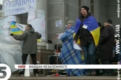 Наразі на Майдані Незалежності кількасот прихильників євроінтеграції. Вони зігріваються співами, танцями та читаннями віршів зі сцени. Намета та бочок для розпалювання вогнища їм ще не привезли. Зробити це зранку пообіцяв голова КМДА Олександр Попов. Натомість на Майдан привезли контейнер для сміття.