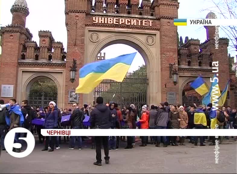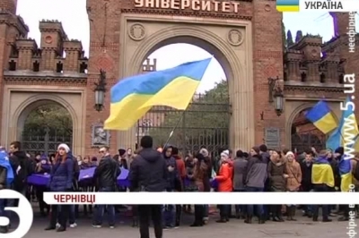 Про акцію оголосили напередодні у соціальних мережах. А сьогодні вигуками закликали усіх небайдужих долучатися до Євромайдану. Підтримали їх і викладачі вишів, навіть ректор чернівецького нацуніверу зазначив, що поділяє настрої молоді, проте зауважив, не вважає мітинги поважною причиною для пропуску занять.