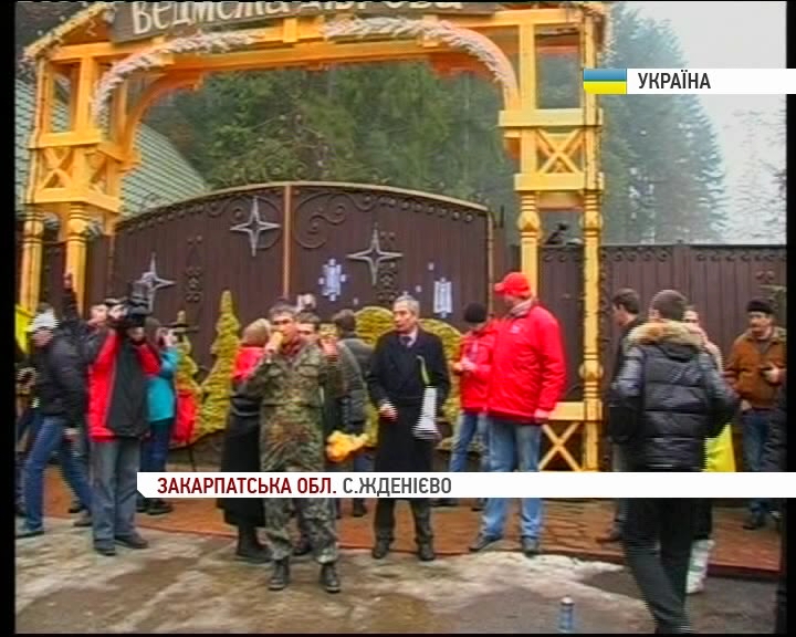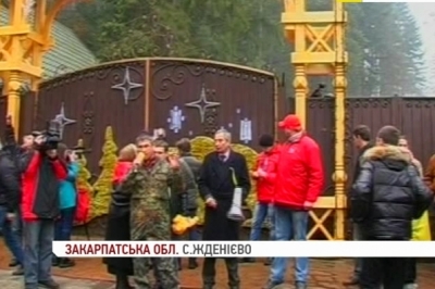 Учасники автопробігу оголосили Медведчука персоною нон-грата на Закарпатті. Заспівали державний гімн і обклеїли карикатурами паркан дачі... Міліція стояла осторонь, перепон не чинила. Власника маєтку вдома не було. По той бік паркану невідомий знімав протестувальників на відео.