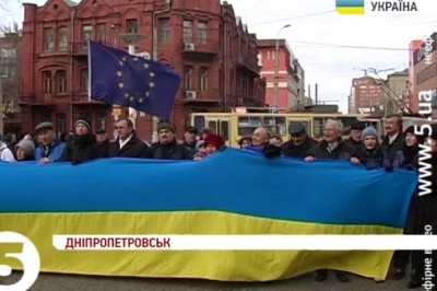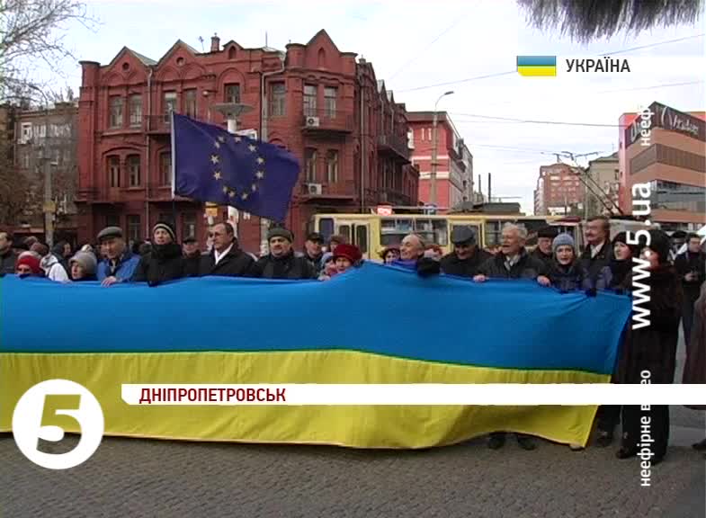 Зокрема, у списку заборонених адрес – Європейська площа, де чотири дні поспіль прихильники євроінтеграції влаштовували мітинги. Нині ж на Євромайдані міська рада організувала продовольчий ярмарок. Утім, ні заборона, ні гастрономічний захід не завадив вийти на акцію сотні мітингарів. Вони навіть розгорнули чотирнадцятиметровий стяг України. Така акція тривала недовго – до активістів підійшли судові виконавці і нагадали про заборону.