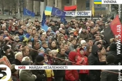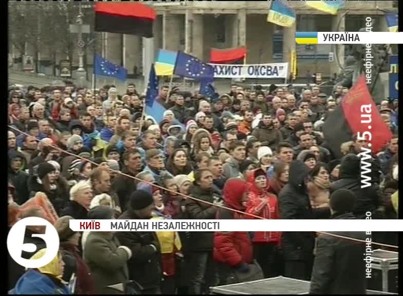 До стели Незалежності нині вже підходять усе більше активістів, які відстоюють європейський вибір України. За підрахунками кореспондентів «5 каналу», їх вже близько двох тисяч. Людей закликають бути обережними і не піддаватись на можливі провокації. Організатори акції просять столичних водіїв не їхати ввечері через центр міста, аби у серці української столиці могли зібратись якомога більше захисників євроінтеграції. Прийти на Майдан їх закликала зі сцени і співачка Руслана.