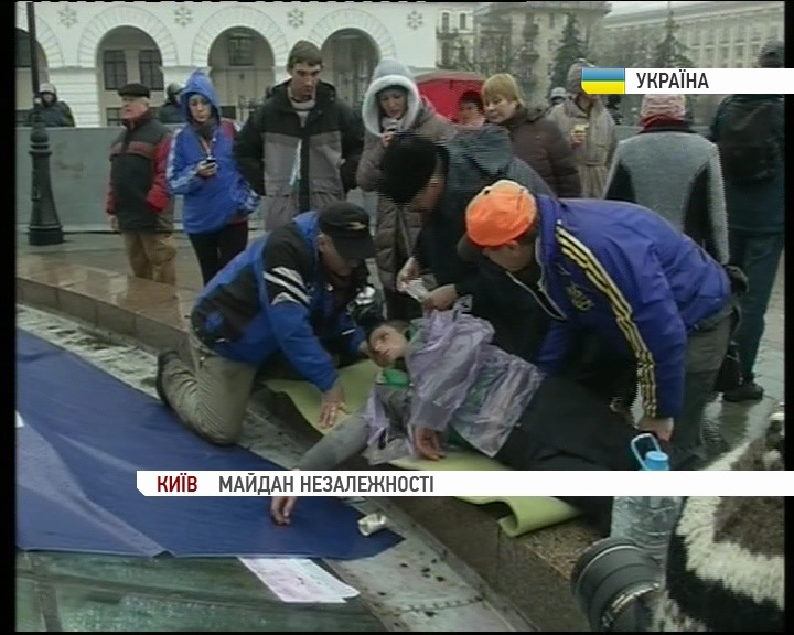 Вдень медичну допомогу протестувальнику, в якого стався епілептичний напад на Майдані незалежності, надав співробітник міліції. Правоохоронець побачив, що чоловіку зле, пройшов крізь обмежувальну загороду і допоміг йому прийти до тями іще до приїзду лікарів.