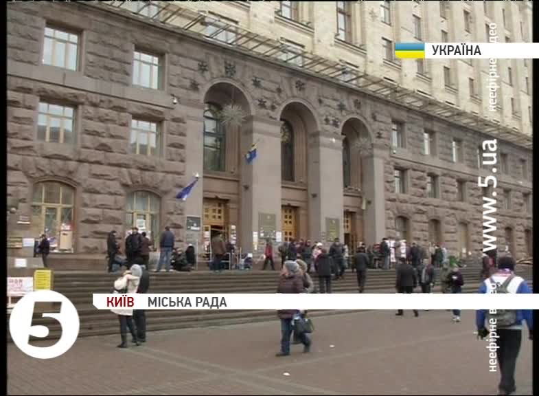 Тим часом, під стінами будівлі мітингувальники збирають підписи за призначення виборів депутатів Київради та відставку відстороненого від посади голови КМДА Олександра Попова, якого підозрюють у перевищенні влади у зв’язку з силовим розгоном Євромайдану 30-го листопада.