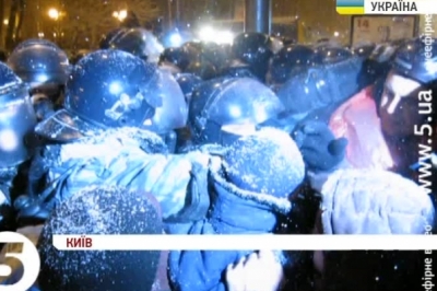 Протестуючий: «От пішли «титушки» валити намети. Дивіться, як під прикриттям міліції. Міліція нічого не робить. От дивіться, як стоїть міліція. – Це благоустрій».