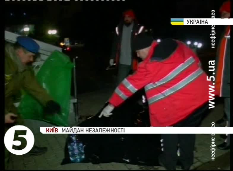 Протестувальник: «Свідки бачили, що людина вже впала, але вона ще жива. Покликали медичну службу – вони намагалися її врятувати. Вона померла на руках у медичної служби, яка є на Майдані, хлопці намагалися її врятувати, надавали першу допомогу, але була велика втрата крові. Тому, поки під’їхала швидка – нажаль, людина померла. Така травма могла бути й від падіння на сходи, наприклад. Тобто, про насильство казати ще зарано».