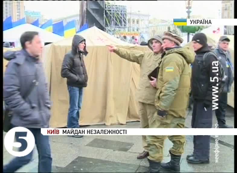 Вони гріються у переходах, їдять у наметах – їх встановили вже і на проїжджій частині Хрещатику. Сам же Майдан забарикадований ялинкою, через встановлення якої нібито і стався розгін Євромайдану в ніч на 30 листопада. Декілька чоловіків одягли каски та шоломи, демонструючи, за їх словами, новий тренд сьогодення.