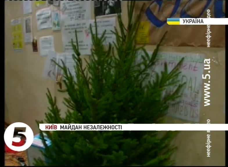 Окрасою ж народного віча стане ялинка, яку подружжя майстрів привезло з Яворова на Львівщині, щоби встановити на сцені Євромайдану. Розповідають: деревце майже європейське, бо росло у лісах на кордоні з Польщею. На ялинку почепили дерев’яних янголят із осоки. Майстри певні: фігурки відженуть із Майдану та всієї України зло. Яворівських янголят роздаватимуть також учасникам акції з-за кордону.