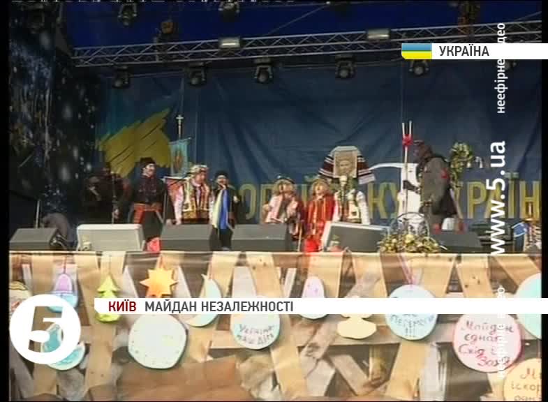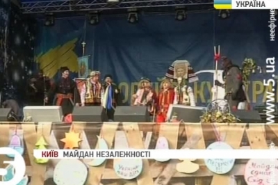 Переодягнені в образи Маланки, Василя, Кози, Чорта люди розважають присутніх, засівають та бажають щастя мітингувальникам. Уже за кілька годин на сцену мають піднятися актори Академічного театру «Воскресіння» та солісти хору зі Львова. Вони покажуть святкову виставу з акторами на ходулях та кількаметровими масками. У киян є унікальна можливість побачити прем’єру цього дійства. До речі, гості зі Львова могли і не потрапити на Євромайдан – автобус із їхнім реквізитом кілька годин на під’їзді до площі не пропускали працівники Державтоінспекції.