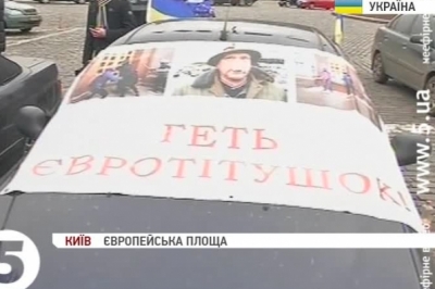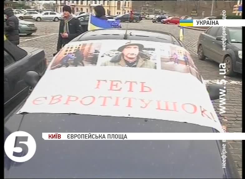 Там зібралися близько сотні людей. Чоловіки, які намагалися своїми автівками завадити виїзду Автомайдану, заявили, що їм набрид перекритий Хрещатик і дим над Майданом Незалежності. Тому закликали згорнути намети та розійтися по домівках. Вони також наголосили, що не належать до жодної партії, а представляють громадську організацію «За порядок». Про ранкових гостей автомайданівці знали і заявили, що ця акція не завадила їм, а розсмішила. Протистояння тривало кілька годин. Потому активісти майже синхронно посідали в автівки і рушили з Європейської площі.