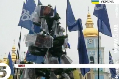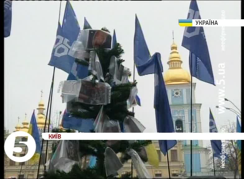 Колона з сотні людей піднялася до офісу бізнесмена на вулиці Десятинній. Дерево прикрасили світлинами студентів і журналістів, побитих під час кривавого розгону Євромайдану в ніч на 30 листопада. Рината Ахметова мітингарі закликають припинити фінансування Партії регіонів і змусити підконтрольних йому депутатів проголосувати за відставку уряду. Ще одна «кривава ялинка» має з’явитися під офісом секретаря РНБО Андрія Клюєва.