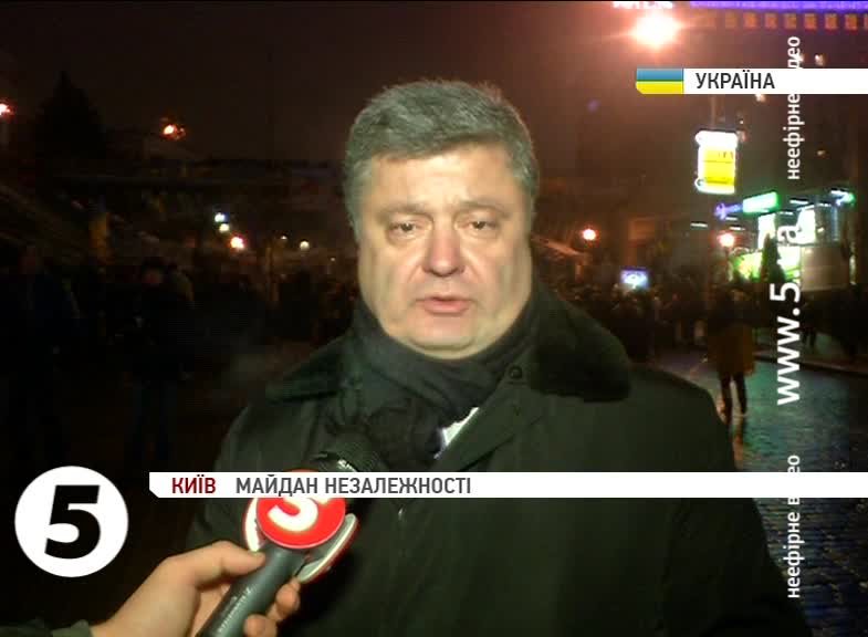 Петро Порошенко, народний депутат України: «Під час Ради Євросоюзу на рівні голів держав і голів урядів 19 грудня на яке планується винести українське питання. І я впевнений в тому що тісна взаємодія українського майдану, української опозиції з нашими партнерами із Європи гарантовано приведе до бажаного результату, коли будуть виконані вимоги Майдану».