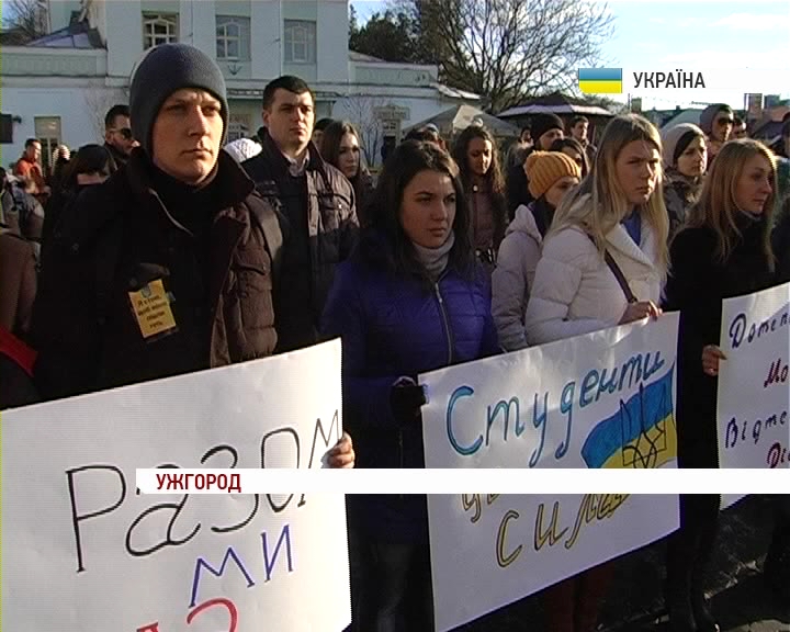 Сотня студентів пройшла ходою в Ужгороді під гаслом - «Разом і до кінця» Зупинилися: біля стін МВС - вимагали покарати винуватих у побитті студентів у ніч на 30 листопада. А від Закарпатської облради - зібрати позачергове засідання та ухвалити звернення про відставку Уряду.