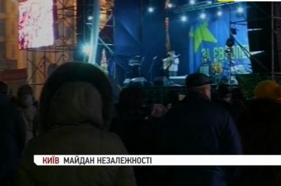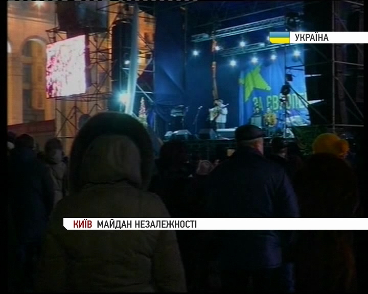 Якщо вранці більшість із них іще ходили біля кухні в очікуванні смачної їжі, то зараз люди головно розважаються. Веселять їх музики зі Львова, які ходять Майданом Незалежності, грають на барабані й акордеоні та співають колядок. Біля чоловіків гуртуються десятки людей і підхоплюють святкові пісні.