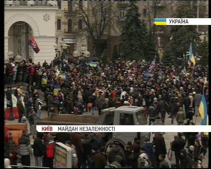 Також ялинку, яку почали встановлювати на Майдані - почали прикрашати прапорами. Активісти полізли на каркас із стягами.