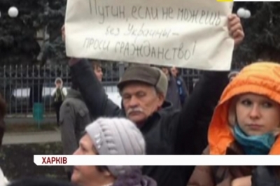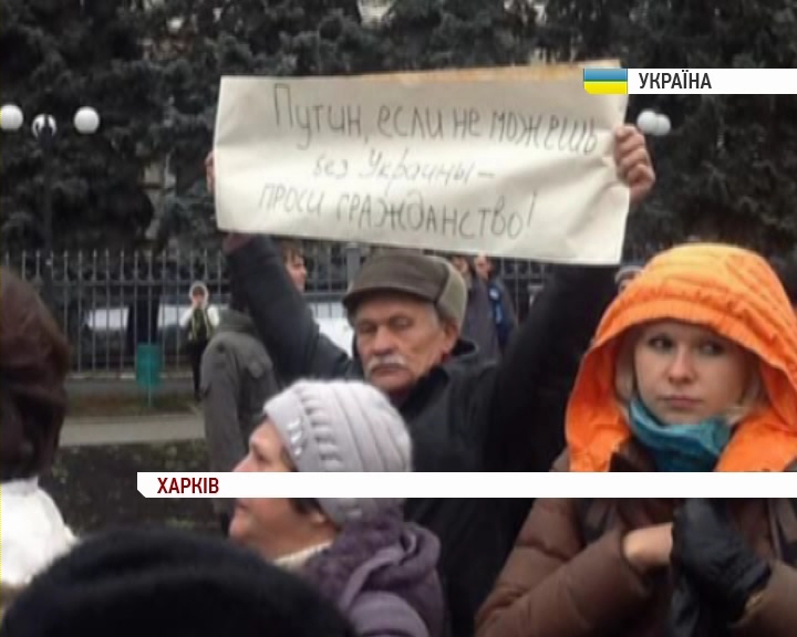 До пам’ятника Ярослава Мудрого, де зібралися близько сотень учасників, підігнали дві автівки з провладною символікою та із звукопідсилюючою апаратурою. Їх охороняють близько десятка правоохоронців. Потому до місця збору почали підходити учасники провладного мітингу, який відбувався ще кілька годин тому біля пам’ятника Шевченкові. Їх навіть більше ніж євромайданівців, близько півтисячі. Молодики спортивної статури почали кидати у натовп євромайданівців петарди. Одного із хуліганів одразу затримали правоохоронці.