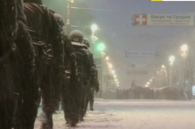 А це - з боку Михайлівської площі. Внутрішні війська шикуються до роботи.
