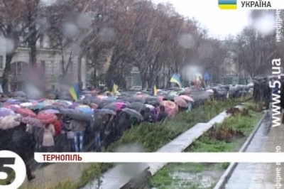 Переважно нині там студенти, які полишили навчання та вийшли на протест. На площі почали встановлювати наметове містечко, у якому планують проводити заходи: мітинги, роз‘яснювальну роботу, виступи місцевих музикантів, відбір волонтерів для поїздок до Києва. Студенти пройшли маршем по центральних вулицях Тернополя, на разі колона повернулася на майдан.