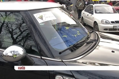 Як відомо, десятки автівок на знак протесту сьогодні блокували рух навколо Верховної Ради, напередодні - біля Кабміну, а в неділю намагалися проїхати до президентського маєтку в Межигір'ї. Небайдужі водії були із українськими та європейським прапором і не приховували, що таким чином підтримують Євромайдан.
