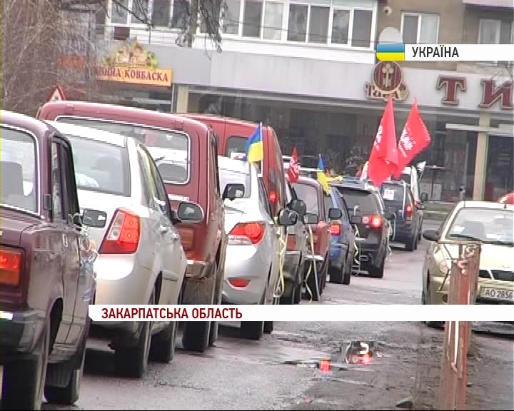 Таким чином місцеві активісти виступали проти ухвалених скандальних законів. На кордонах учасники автопробігу тримали гасла "Ні диктатурі в Україні", написані різними мовами. Крім того, закликали жителів сусідніх країн, які часто приїздять на Закарпаття за крамом, - не купувати товари, бренди яких належать депутатам-регіоналам.