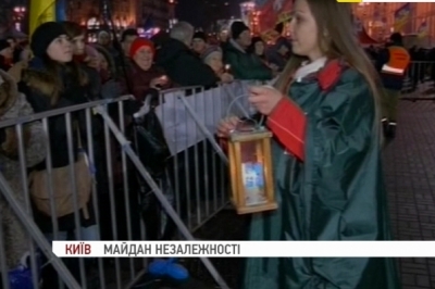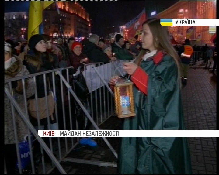 Потому учасники урочистостей вирушили на майдан, де з головної сцени передали охочим запалений символ Різдва. Лампадки з Вифлеємським вогнем миру встановлять у медичних і молитовних наметах та у шатрі Мальтійського Хреста. Потому протягом тижня пластуни розвезуть вогонь у церкви, лікарні та сиротинці столиці. Зазвчай Вифлеємський вогонь миру передають тим, хто святкує Різдво поза домівкою.