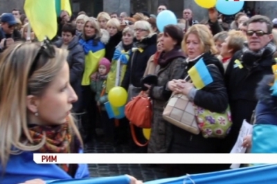 Цього разу маніфестацію провели на площі перед Пантеоном - найстарішою культовою спорудою Рима. Цікавий нюанс, зазвичай на площі цій заборонено мітингувати, але для українців мерія зробила виняток. На початку акції учасники розгорнули синьо-жовтий стяг та заспівали гімн держави. В такий спосіб засвідчили своє бажання аби країна долучилася до Європейського Союзу. Опісля закликали весь світ підтримати Україну в європрагненнях. Під час останніх євромайданів у Римі українці вже зібрали кілька тисяч євро для допомоги мітингарям у Києві.