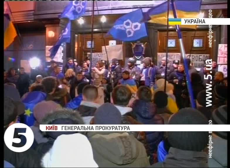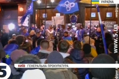 Напередодні, там зібралося близько однієї тисячі протестувальників, які вимагають звільнення з-під варти затриманих та побитих. На місці обладнали невеликий пункт харчування та розбили намет. Тим часом, в самій Генпрокуратурі підвищили заходи безпеки. У дворі знаходиться спецпідрозділ «Беркут». Відвідувачів пускають в середину лише з бокового входу.