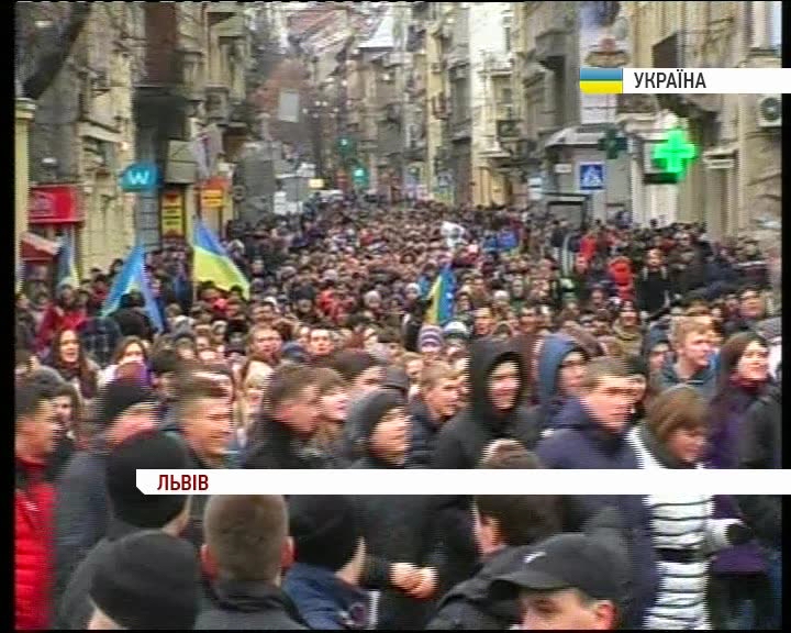 Із прапорами у руках і гучними гаслами рушає тридцятитисячна колона Львова до обласного управління міліції. Бо ті, запевняють - ДАЇ не дають активістам поборотися за європу у столиці