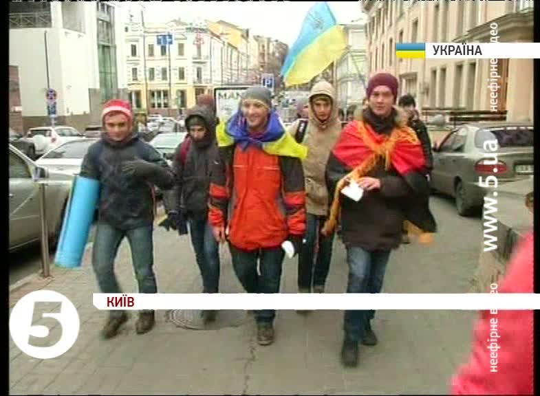 Дорогою активісти скандують гасло «Україна – це Європа», а у руках тримають синьо-жовті національні прапори. Студенти вже побували у кількох іноземних представництвах у Києві, зокрема, у естонському. Вони передали своє звернення секретарю посольства, який пообіцяв одразу надіслати його послу. До кінця робочого дня студенти планують обійти всі посольства країн членів Євросоюзу.