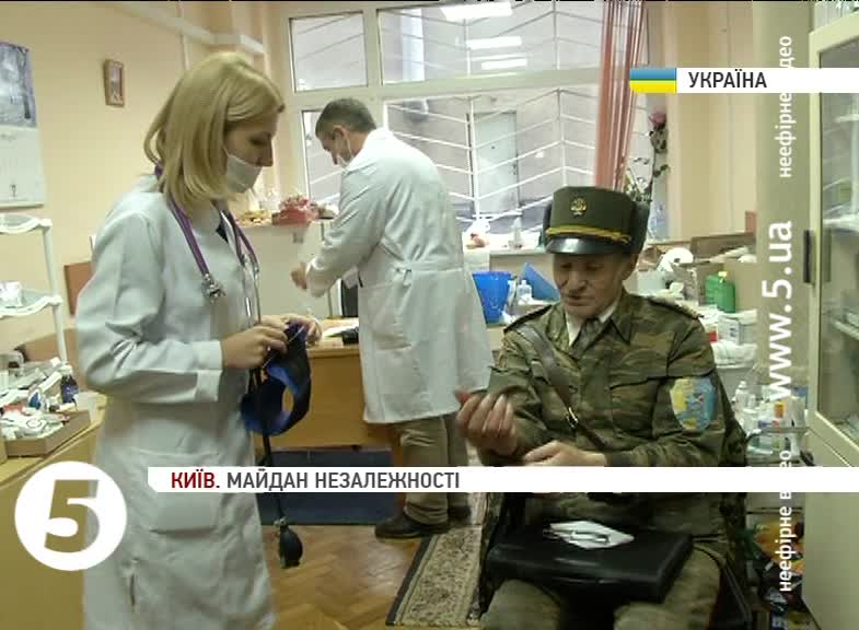 Дві сотні лікарів, медичних сестер та волонтерів щодня чергують на Майдані Незалежності. У медпункті кажуть: хтось із колег приїжджає на вихідні, хтось спеціально відпустку на роботі оформлює. Стоматолог Микола з Чернівців у столиці – у відряджені. Розповідає: замість того, аби дивитися на пам’ятники – приїхав на Євромайдан.
