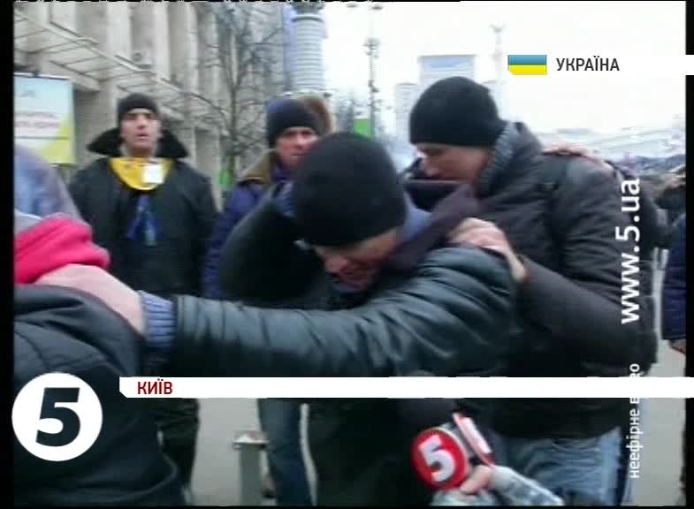 Андрій Левус, керівник комендатури самооборони Майдану: «З ними була проведена певна виховна робота. І самооборона майдану вивела їх просто за периметр майдану. І по дорозі вони просили вибачення в українського народу. Хода символічна, оскільки ми боялися заводити їх на майдан. Оскільки люди бачать, що пропадають наші активісти. Що на напади на наших активістів можуть відреагувати більш рішуче. Тому ми повели їх сюди».