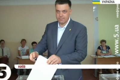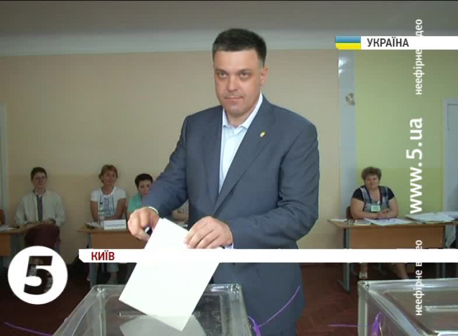 Головний націоналіст країни прийшов до дільниці разом із дружиною, старшою дочкою та мамою. Більше години простояла родина Тягнибоків у черзі на волевиявлення.