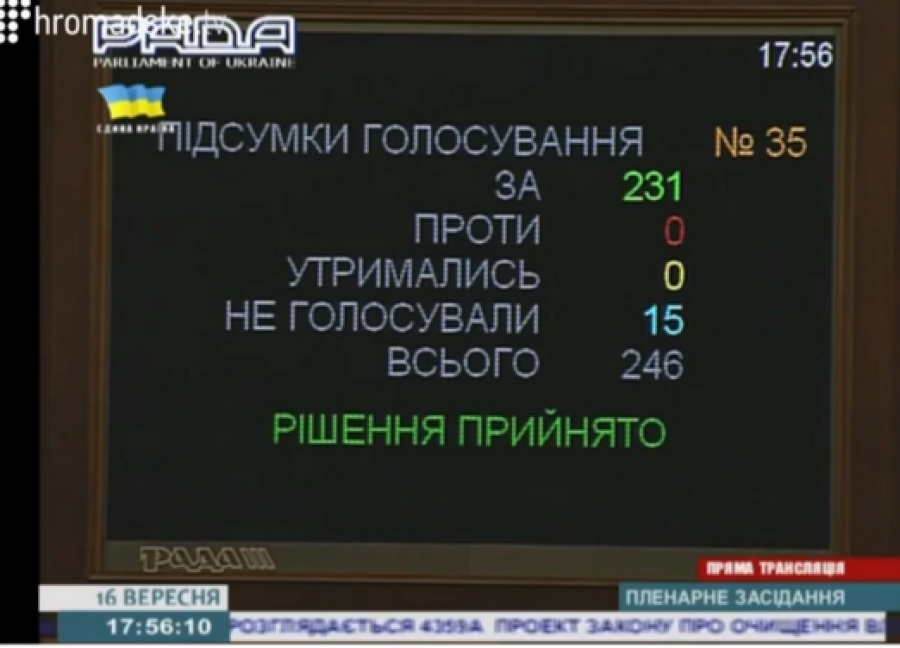 Після додаткового обговорення за прийняття закону "Про очищення влади" проголосував 231 народний депутат.