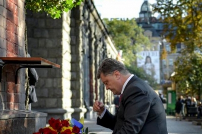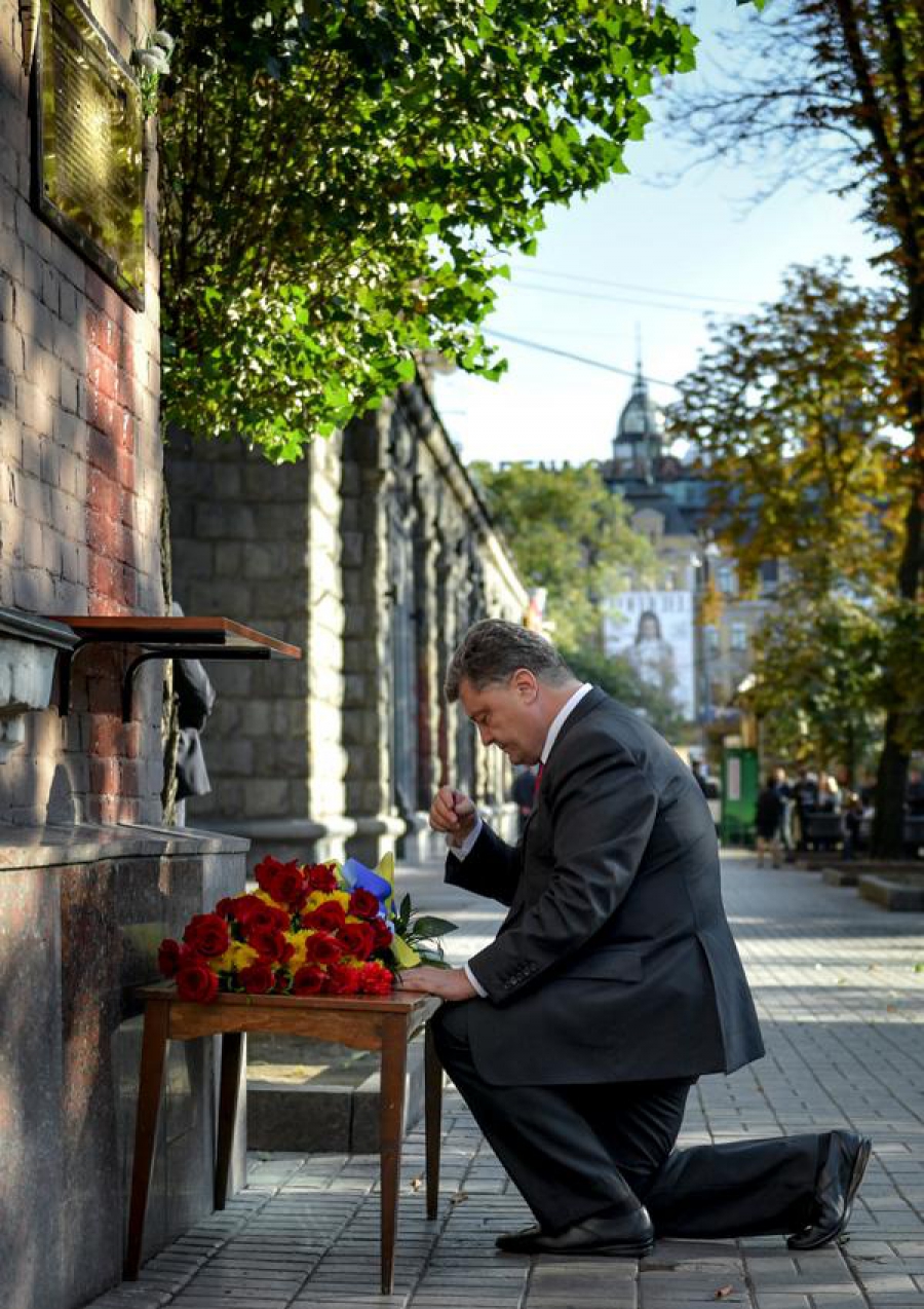 У день 14-ї річниці загибелі Гергія Гонгадзе, Президент України Петро Порошенко вшанував пам’ять журналістів, які загинули під час виконання професійних обов’язків. Глава держави поклав квіти до меморіальної дошки, розташованої на будівлі Національної спілки журналістів України.