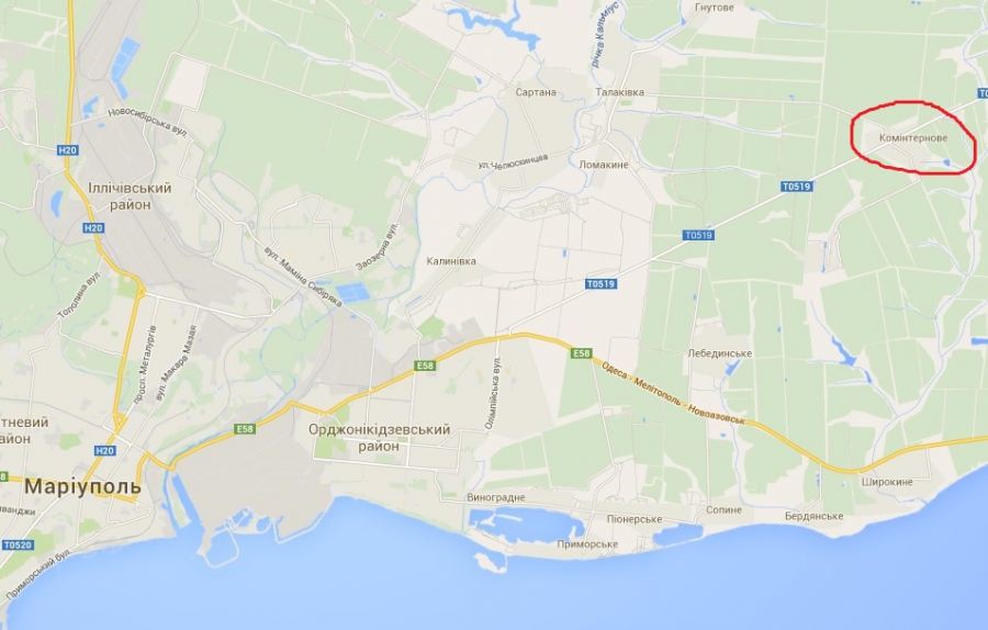 Комінтернове розташоване за 20 км від Маріуполя.