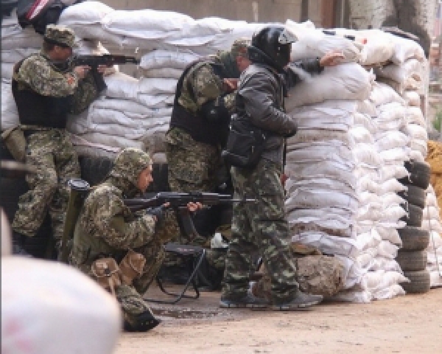 "Тут постійно чергують бойовики, озброєні снайперськими гвинтівками і кулеметами. Кілька озброєних бойовиків постійно чергують у дворах за виконкомом. За нашими даними, "патрулям" терористів роздані коктейлі Молотова", - зазначає Тимчук.