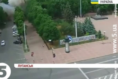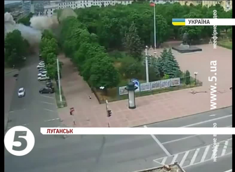Між тим, у центрі Луганська у приміщенні ОДА пролунав вибух. Щонайменше п'ятеро людей загинули. Такі дані наводять сепаратисти. Місцева влада підтверджує лише двох загиблих. Вибух стався через випущену сепаратистами ракету – повідомляє обласна міліція. Там кажуть: терористи цілились у літак, однак ракета змінила курс і влучила у будівлю ОДА. Фахівці припускають, що вона зреагувала на тепло від кондиціонера.