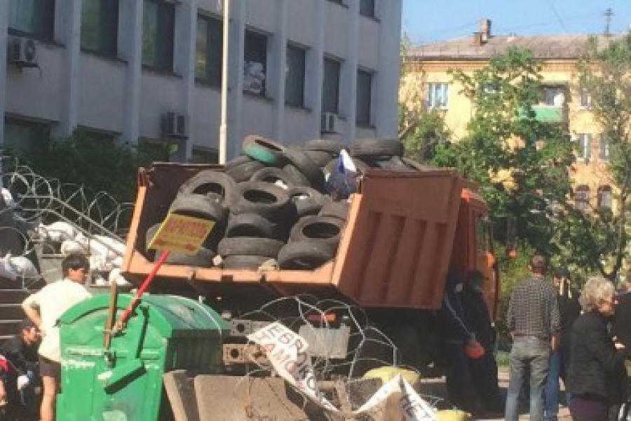 Нагадаємо, всю ніч у центрі Маріуполя горіли покришки, місцями велася стрілянина.