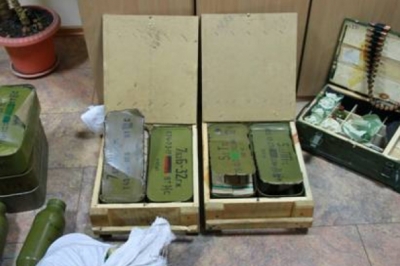 У помешканні ватажка групи виявлено облаштовану схованку, з якої вилучено чотири гранатомети типу "РПГ", 7 гранат "Ф-1" із запалами, димову шашку, 9 гранат для протитанкових гранатометів, кулеметну стрічку, споряджену сотнею набоїв, 9 порохових зарядів та детонатори, радіостанцію та майже п’ять тисяч набоїв калібру 5,45 та 7,62 мм.