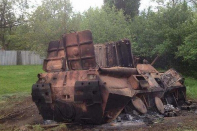 "16 липня на перехресті автодоріг Н-21 "Луганськ-Лутугине" і Е-40 "Луганськ-Аеропорт" виявлено залишки обгорілої техніки: автомобіль "ЗІЛ-131" д / н 8251Е9 і БТР, на рамі якого є табличка з текстом "Т07ПТ4633", - проінформувала вона.