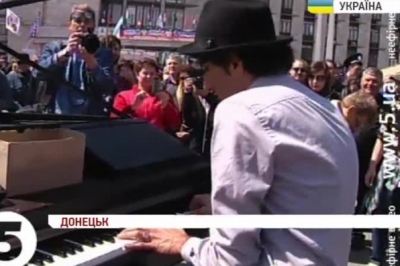 На мітингу лунають російські патріотичні пісні та гімн Російської федерації. Крім того, у Донецьку на площі просто неба встановили рояль. На ньому зіграв німецький музикант Давіде Мартелло. Піаніст відомий тим, що минулого літа грав під час протестів на Стамбульській площі Таксим. Каже, що в ситуації в Донецьку ще не розібрався, але всім бажає миру.