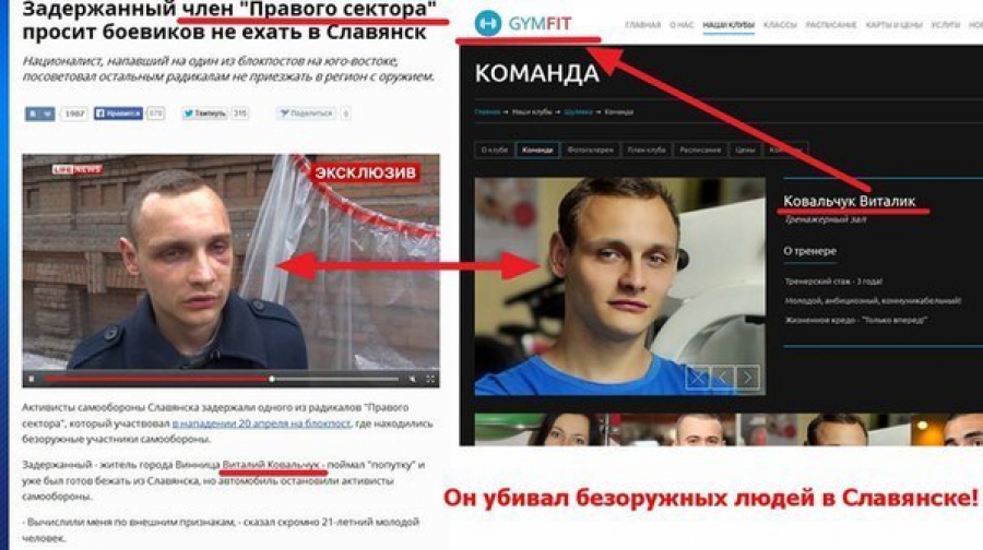 "Правий сектор" надав фотодоказ того, що Ковальчук працював у мережі фітнес-клубів Gymfit, на своїх сторінках у соцмережах.
