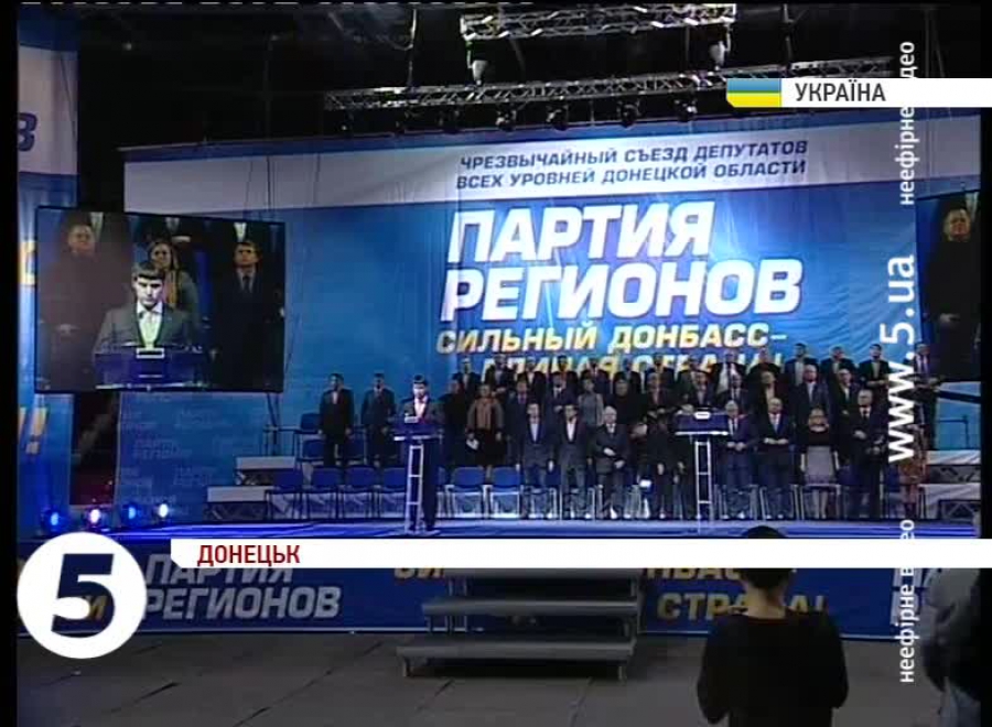 Під час виступів регіонали закликали донеччан скласти зброю та звільнити захоплені адмінбудівлі. Також учасники збіговиська виступили за зміни до Конституції, а саме – російській мові надати статус другої державної, а регіонам – бюджетну та гуманітарну автономію. Іще пропонують провести референдум щодо децентралізації та розширення повноважень регіонів.