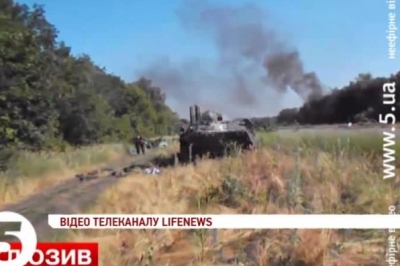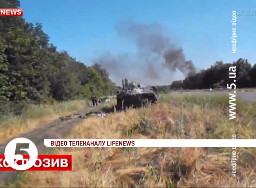 Стверджує: ці кадри зняті в середу, під час зіткнення бойовиків з українським спецбатальйоном неподалік Луганська. На відео – розтрощена бронетехніка та тіла убитих.