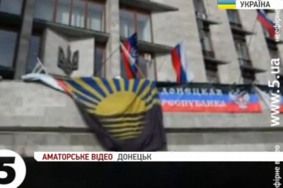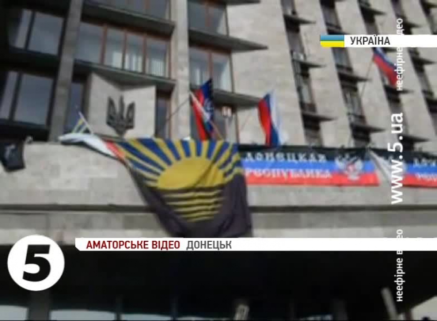 Під звуки гімну тієї ж Росії прапор Донецької області замінюють на стяг забороненої в Україні сепаратистської організації "Донецька республіка". За ультиматумом проросійських активістів, позачергову сесію сьогодні мали провести депутати обласної ради. Проте вони так і не зібралися. Відтак, сепаратисти ухвалили рішення – розпустити обласну раду. Натомість створили нову – так звану "Республіканську народну раду". Відразу і засідання провели.