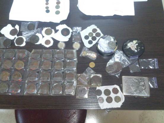 Також поблизу Мар'їнки СБУ спільно з прикордонниками затримала чоловіка, який намагався перемістити через лінію розмежування 106 предметів старовини, зокрема 50 монет 17-18 сторіччя.